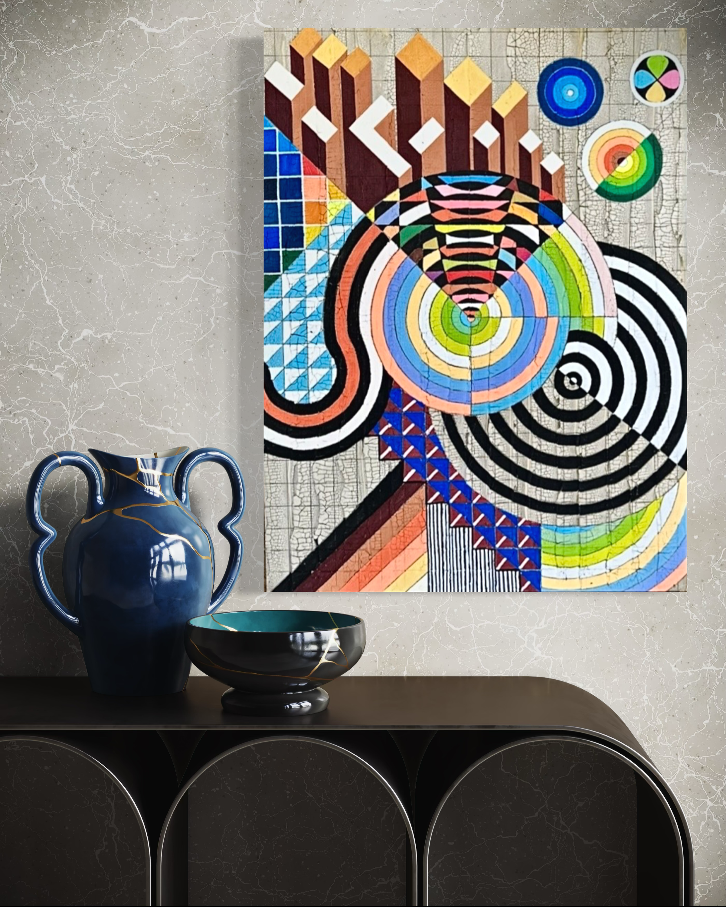 PRIMO - 24” x 18” Prismatic vinyl, acrylic and resin on cradled panel. (Price Available upon request).