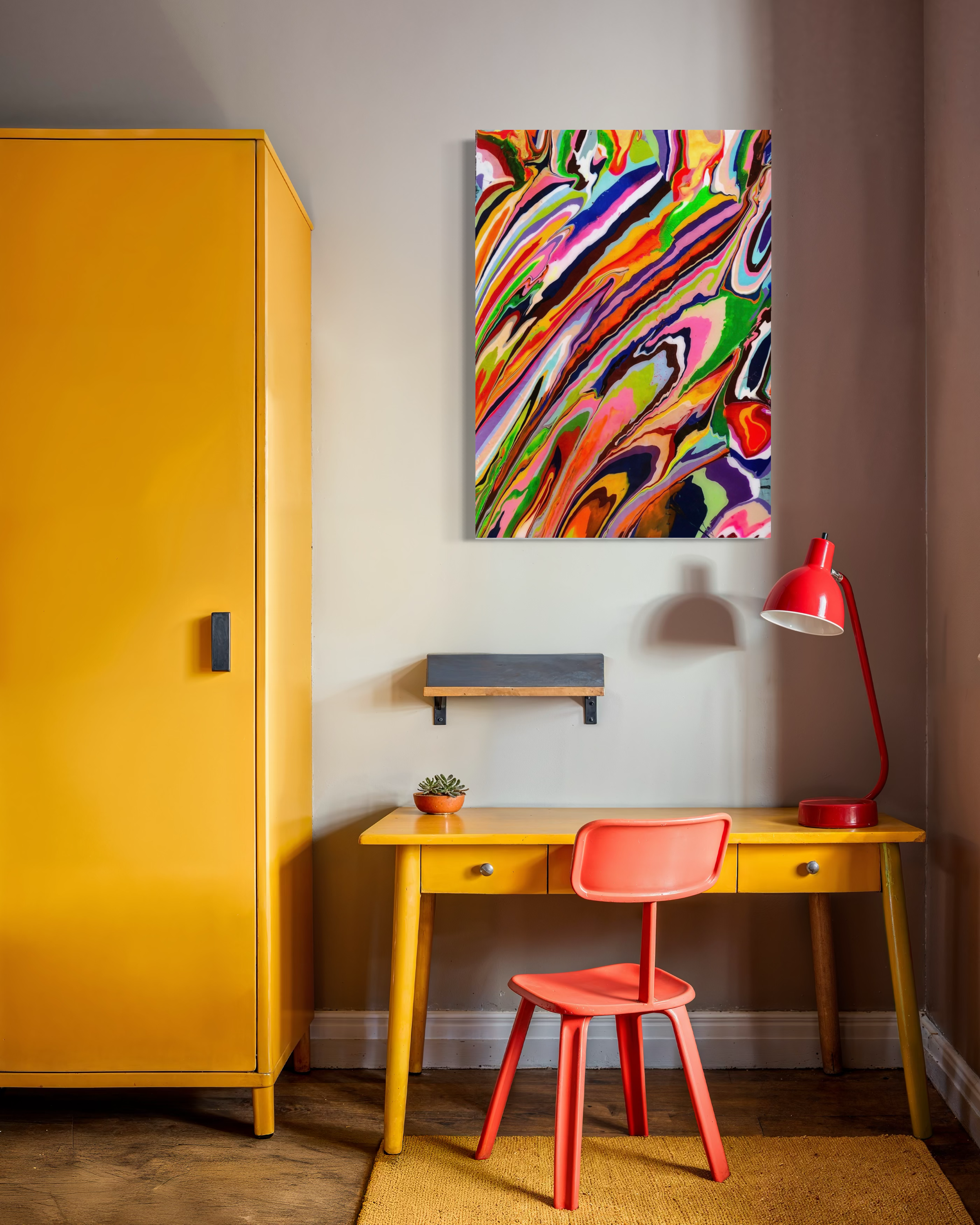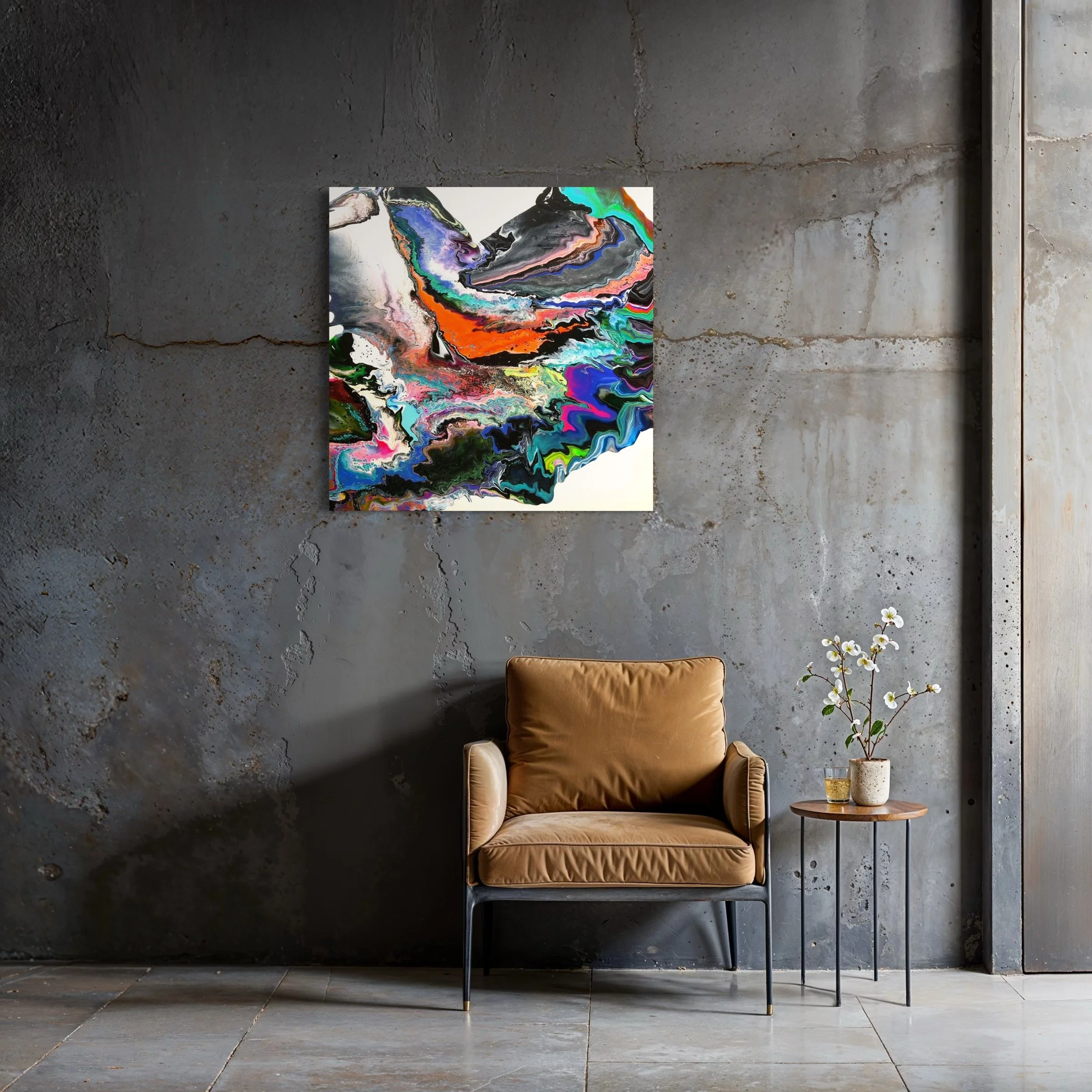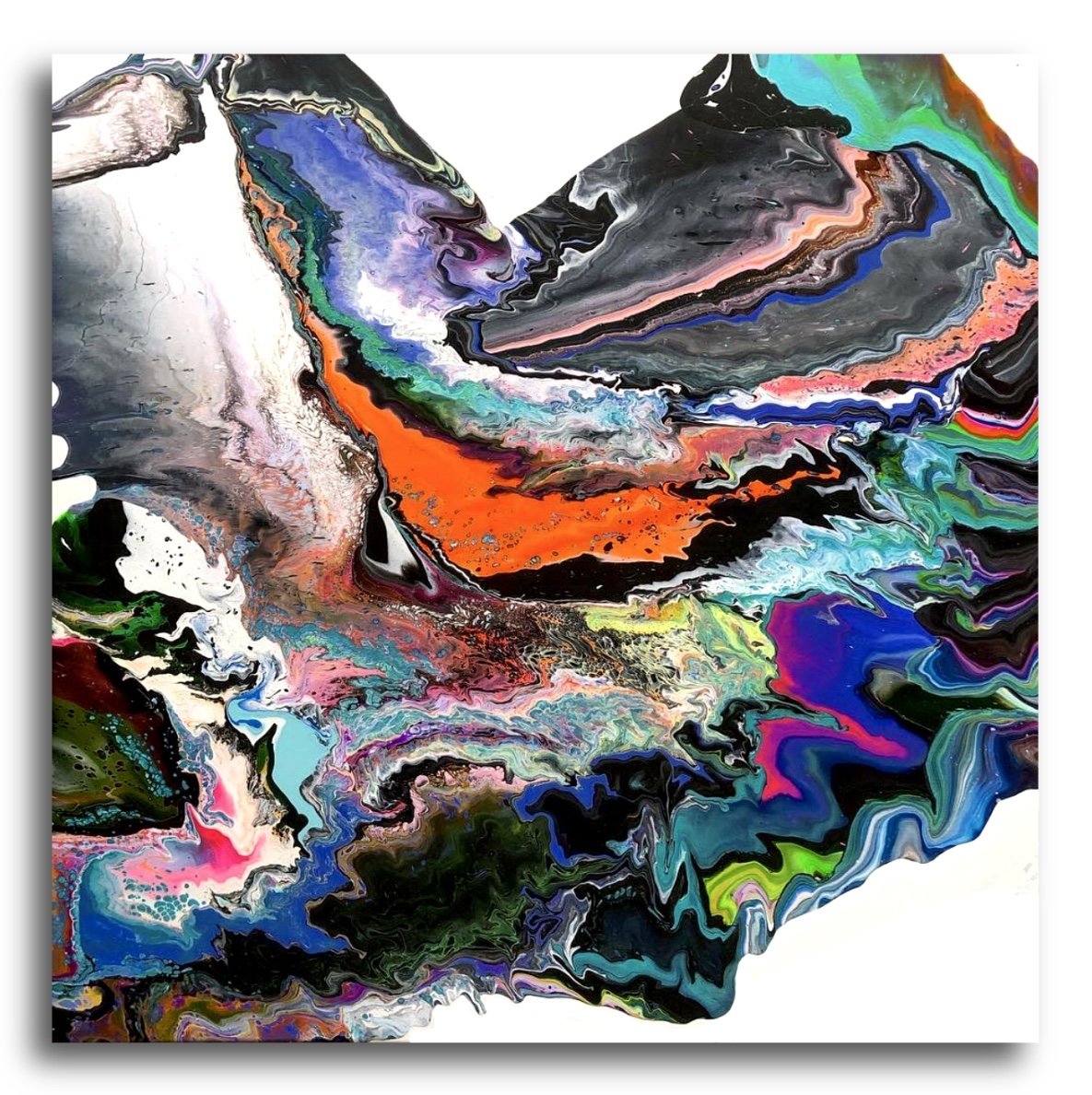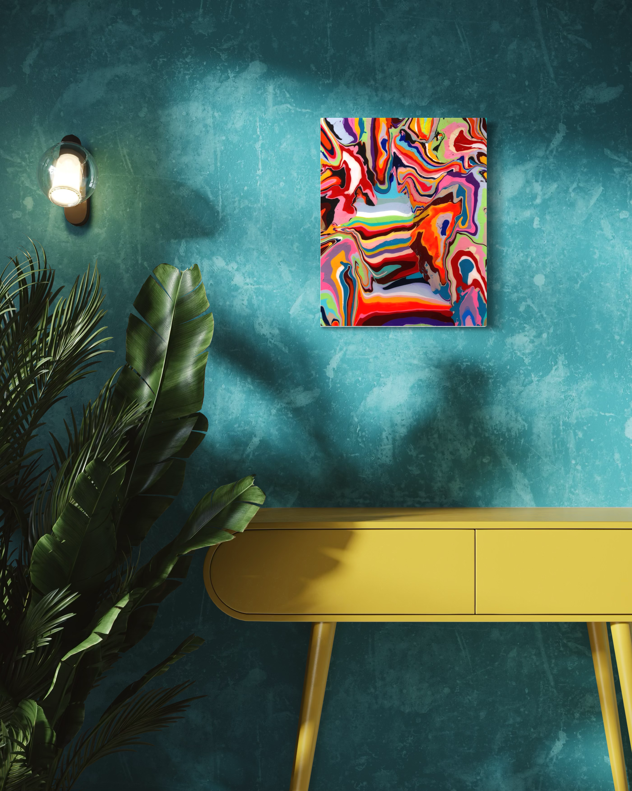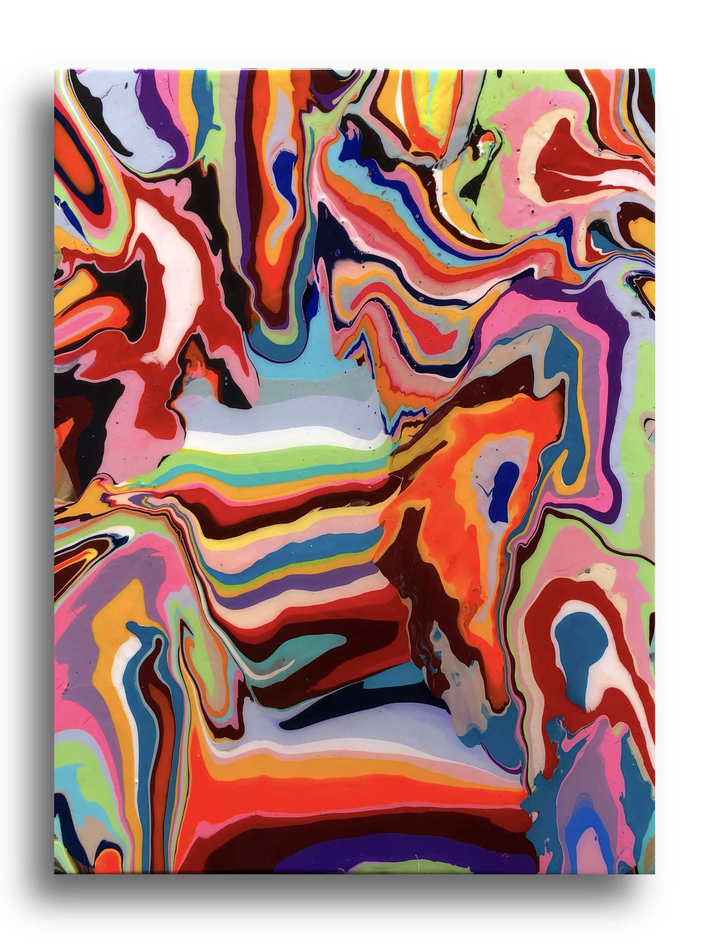 LAVA FLOW - 16” x 12” Acrylic and resin on cradled panel. (Price Available upon request).