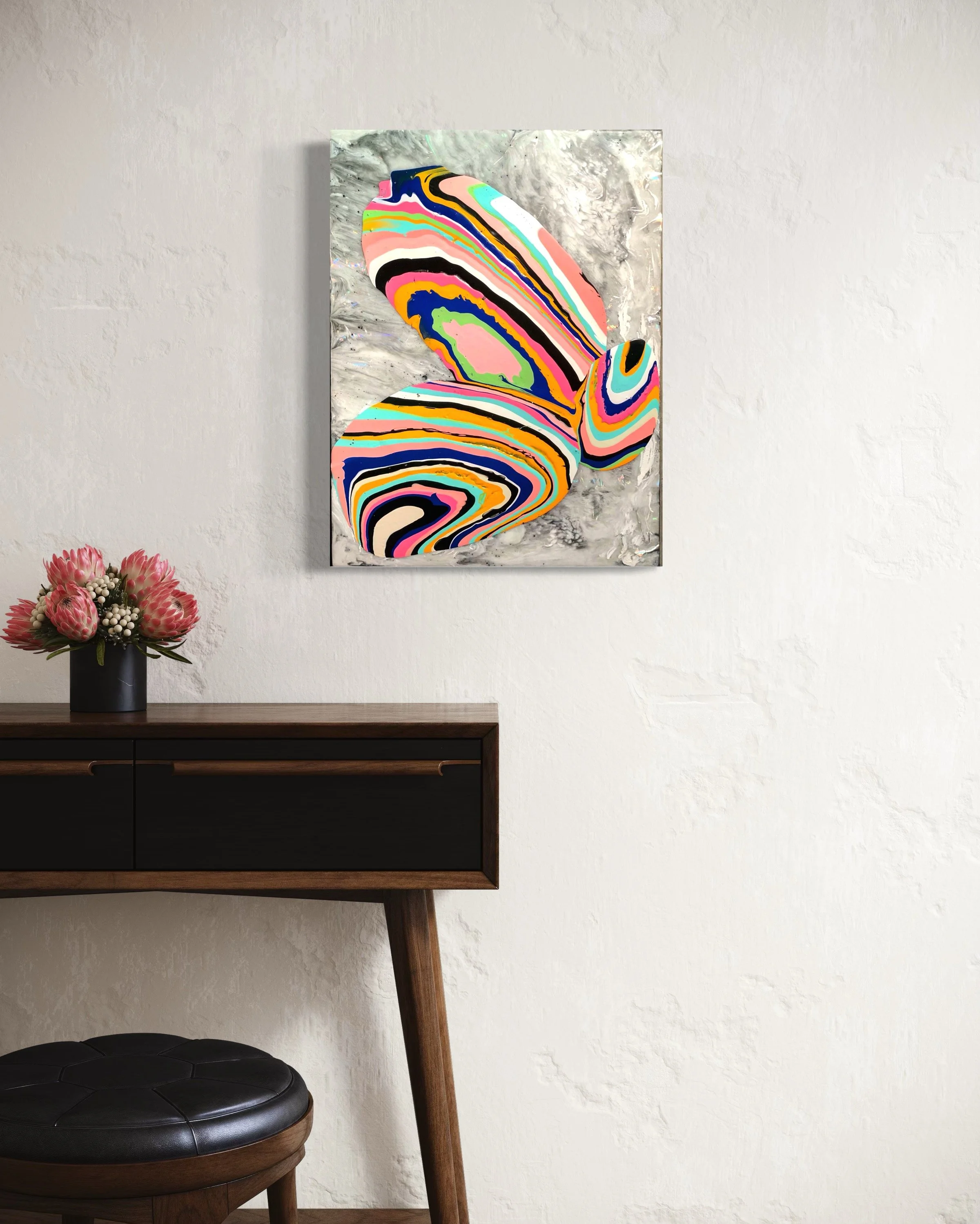 TIDEPOOL ON VENUS - 24” x 18” Acrylic and resin and prismatic vinyl on cradled panel. (Price Available upon request).