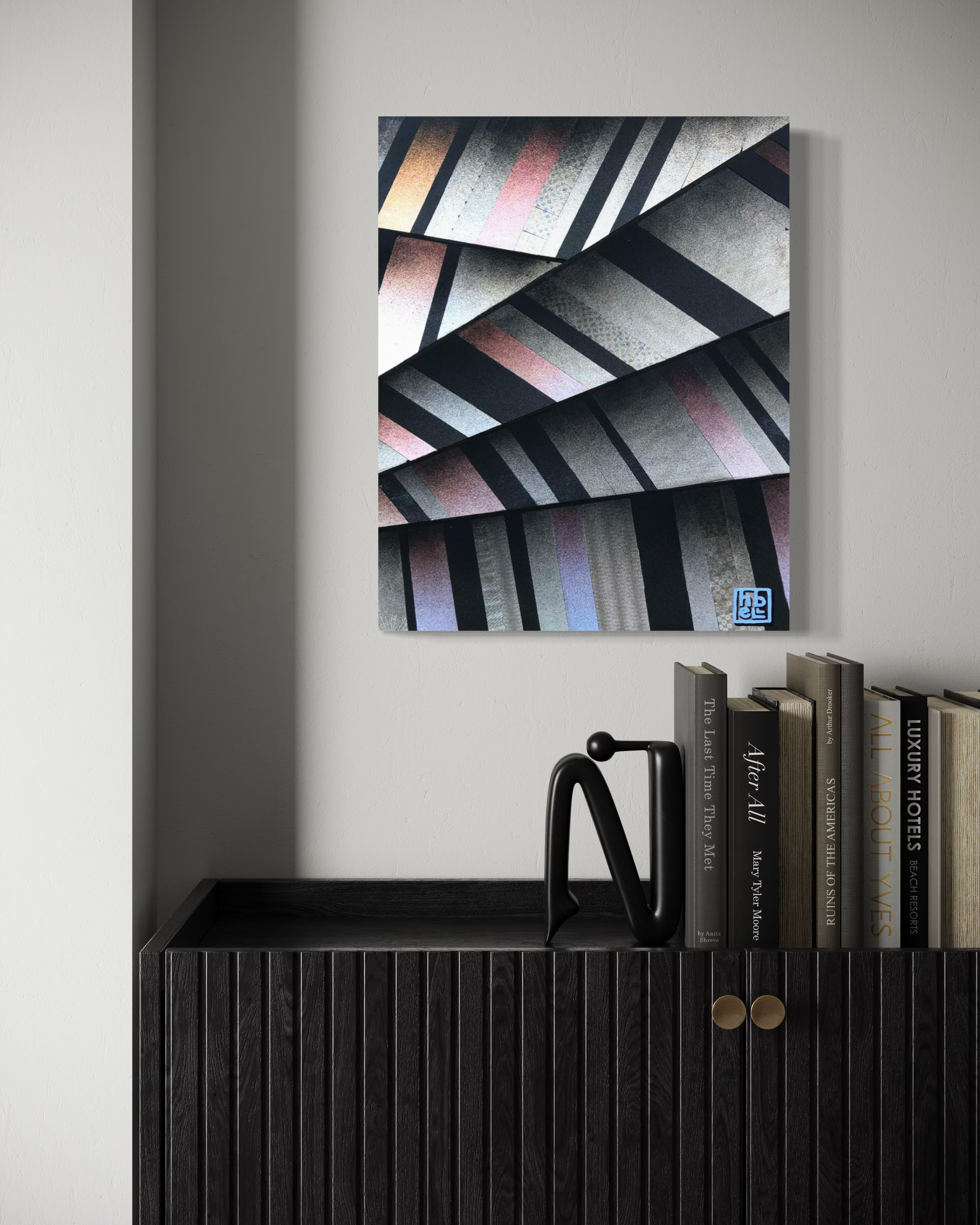 STAIRWAY TO ELATION - 20” x 16” Acrylic and prismatic vinyl on cradled panel. (Price Available upon request).
