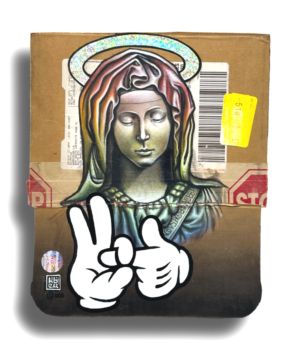 CAUTION FRAGILE - 16” x 8” Acrylic on Cardboard. (Price available upon request).